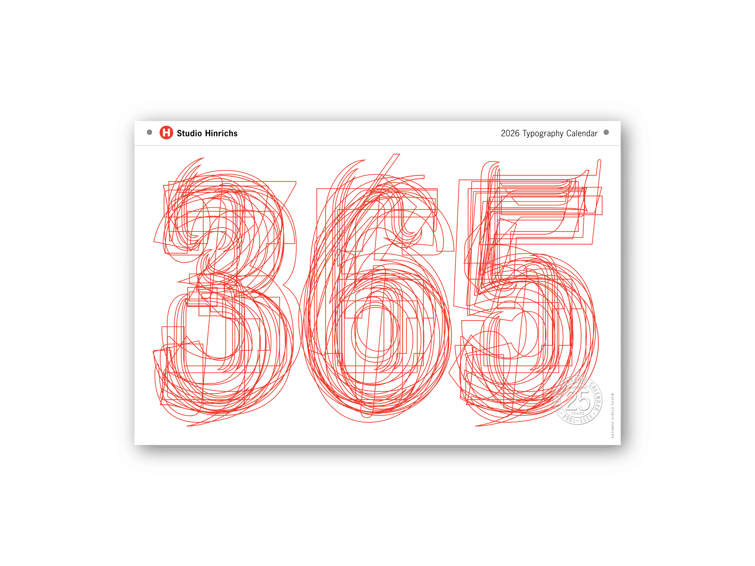 The 2026 calendar, celebrating our 25th anniversary, will be available Fall 2025. This edition showcases a breadth of typographic possibility from classic type revivals to variable fonts and new typographic expressions by designers around the world.